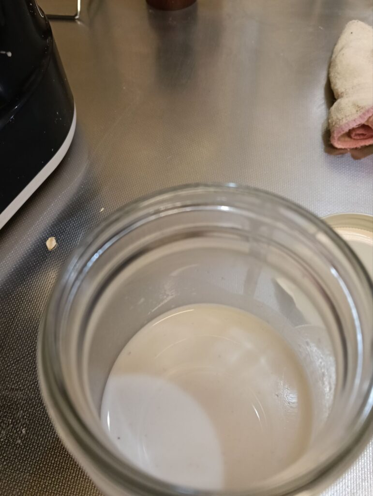 日曜は製菓のため、オーツミルクを自作。ロールドオーツのオートミール100gに水300ccで。
