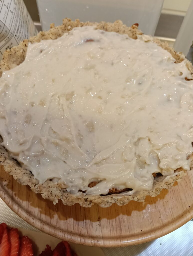 今週のタルト。アレルゲンフリーのカスタードクリームを作ってみた。以前吉野本葛で作ったらほぼゼリーみたいになったから今回は米粉で。